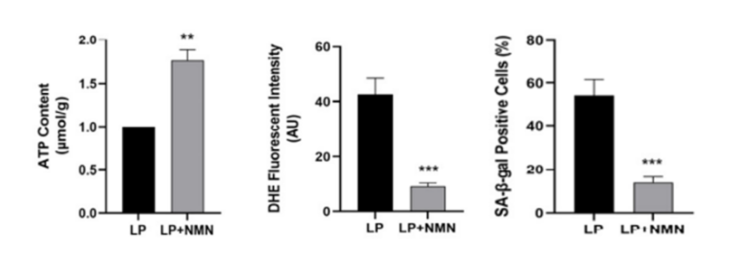 (NMN增加ATP水平,减少ROS水平,并减少衰老细胞)
